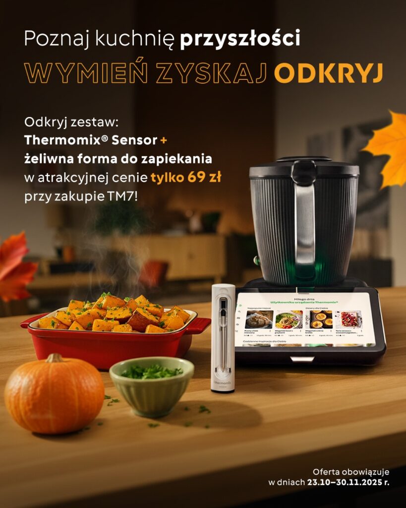 • ODKRYJ – Przy zakupie TM7 możesz otrzymać w cenie 69zł atrakcyjny zestaw Thermomix Sensor + żeliwna forma do zapiekania!